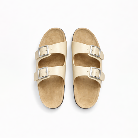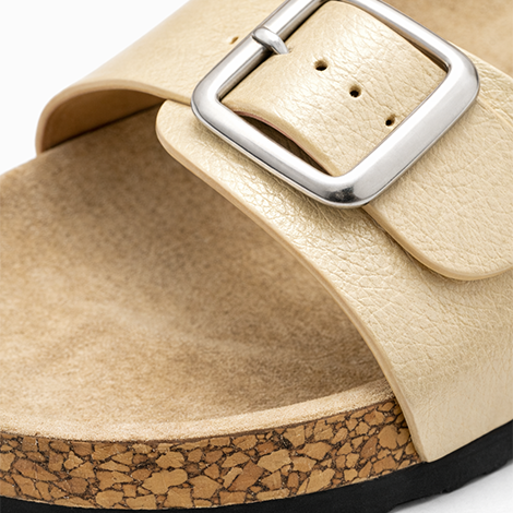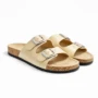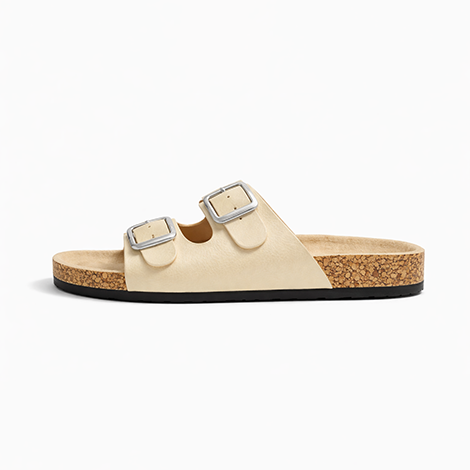 Sandalias minimalistas con doble hebilla ajustable y plantilla cómoda estilo corcho. Diseñadas para ofrecer estilo y confort en el día a día.