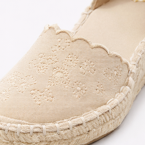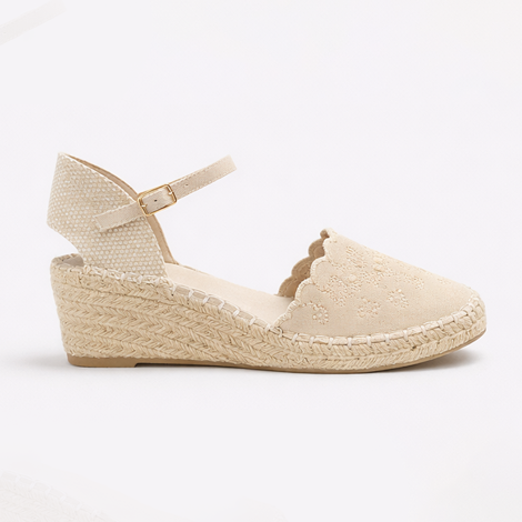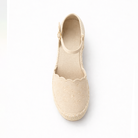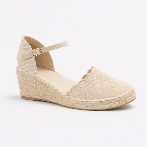 El diseño calado en la parte frontal añade un detalle elegante y femenino, mientras que la cuña estilo espadrille estiliza la silueta sin comprometer la estabilidad. El cierre ajustable en el tobillo garantiza un ajuste cómodo y seguro.