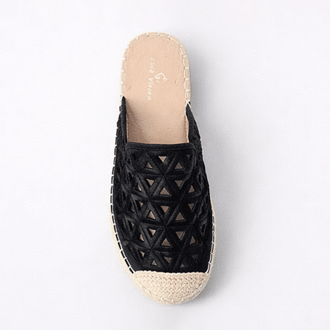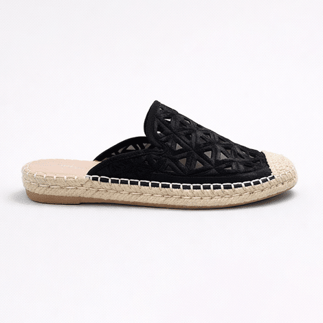 Mules estilo espadrille en color negro con diseño calado geométrico. Elegantes, ligeros y perfectos para el verano.