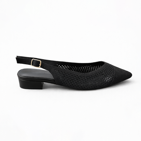 La punta fina estiliza el pie, mientras que el tacón bajo proporciona una altura cómoda para el uso diario. El cierre ajustable en el talón garantiza un ajuste seguro y estable durante todo el día.