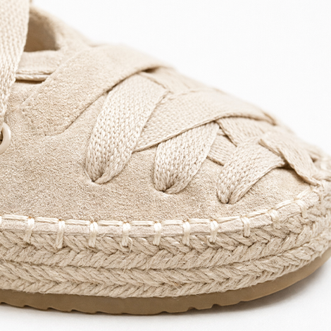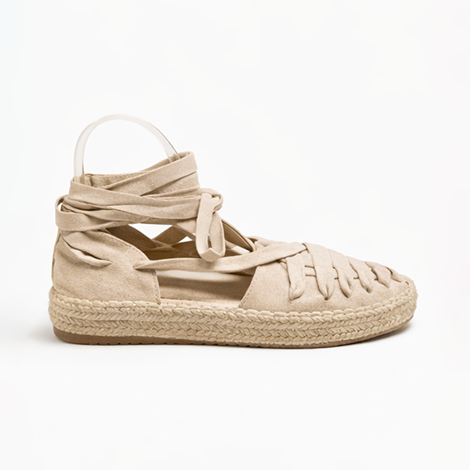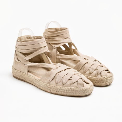 Zapatos estilo espadrille con diseño de tiras cruzadas y cierre envolvente al tobillo. Un modelo elegante y cómodo perfecto para looks de verano.